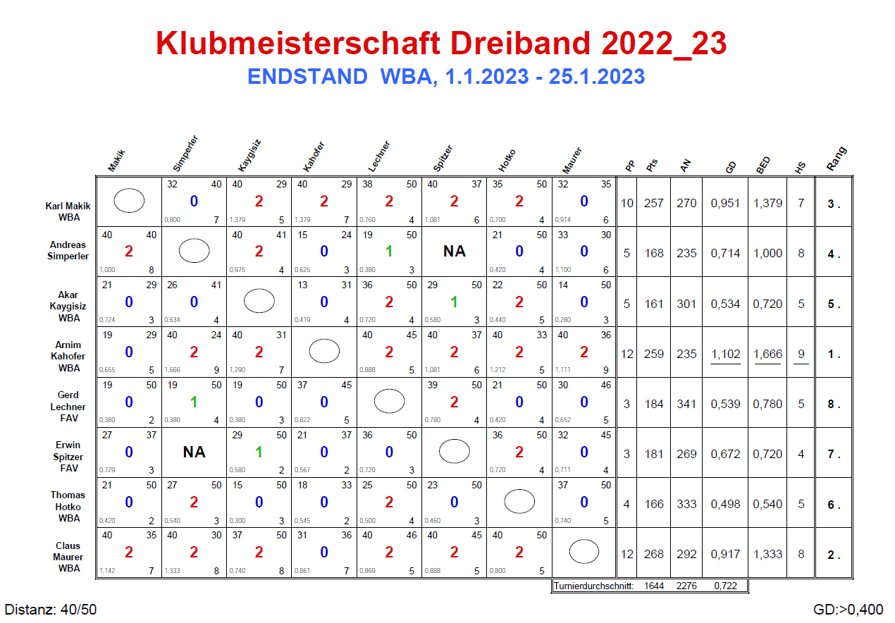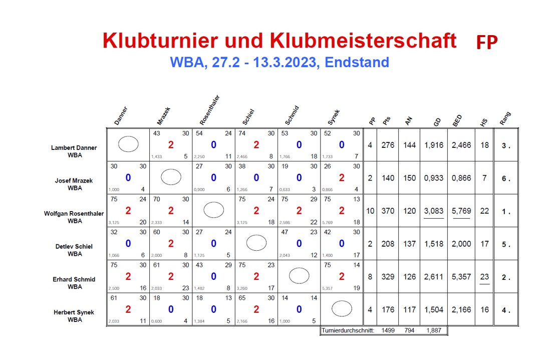 KLUBTURNIER + KLUBMEISTERSCHAFT FREIE PARTIE